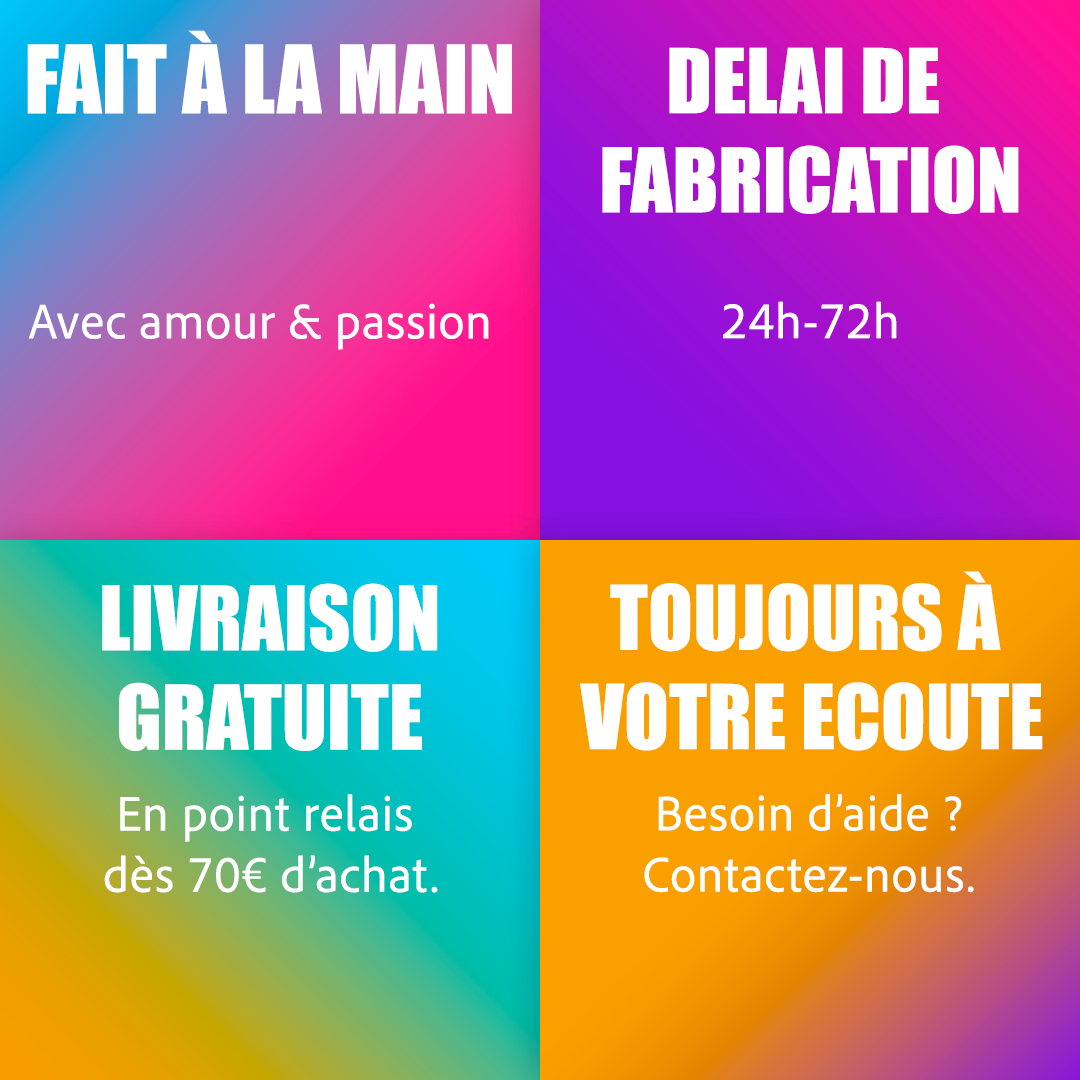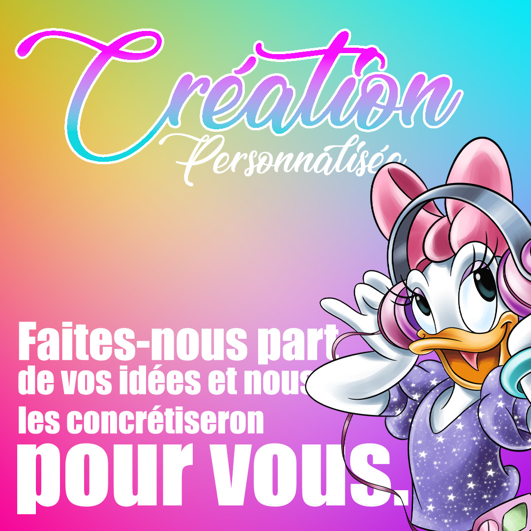 Tout article personnalisé ou création personnalisée ne peut pas être remboursé, échange ni retourné.