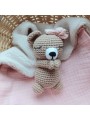Doudou Oursonne en tricot, avec lange gaze de coton,Cadeau de naissance.