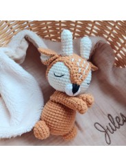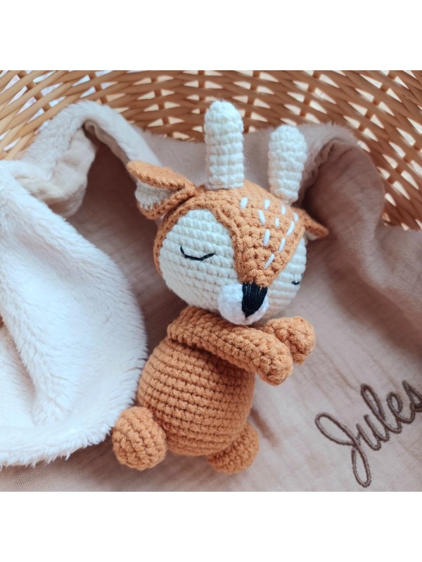 copy of Doudou Biche en tricot, avec lange gaze de coton,Cadeau de naissance.